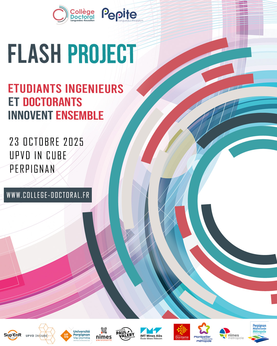 Plongez dans l'univers de l'entrepreneuriat en participant au Flash Project, un défi collaboratif où doctorants et élèves ingénieurs innovent ensemble ! Organisé par le Collège Doctoral LR et Pépite LR, cet événement se tiendra le 23 octobre 2025 à UPVD IN CUBE à Perpignan. Pendant cette journée, vous travaillerez en équipe pour résoudre une problématique d'entreprise locale et créer un projet innovant. Une occasion unique de mettre vos compétences de chercheur à l'épreuve dans un contexte d'innovation.